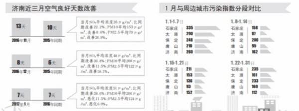 此外,濟(jì)南市還進(jìn)行了清潔型煤的推廣,集中開(kāi)展散煤整治,接近30萬(wàn)戶居民實(shí)現(xiàn)生活燃煤清潔化。在2月16日的全省環(huán)境保護(hù)電視電話會(huì)議上,副省長(zhǎng)張務(wù)鋒介紹,根據(jù)監(jiān)測(cè)數(shù)據(jù),凡是煤炭清潔高效利用工作進(jìn)展快的城市,空氣質(zhì)量改善幅度就大,特別是濟(jì)南、淄博、濟(jì)寧、德州、聊城等市,改善幅度居全省前列。