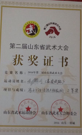 李瑞毅“曬”武術類獎狀