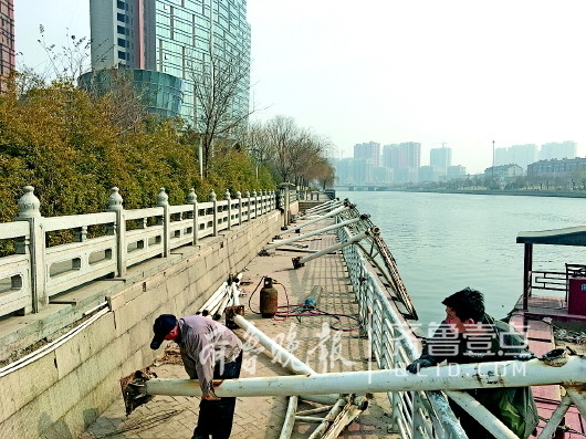 春風壯如牛,2月19日早上有市民反映濟南小清河北岸的板橋碼頭候船站亭子被大風吹毀,站頂被吹走,立柱被攔腰吹斷。記者探訪后得知,候船站是被前幾天晚上的大風吹毀的,從18日開始便有施工隊伍在此切割鐵柱。19日下午,濱河集團有關工作人員表示,他們每天都有巡河人員對公共服務設施進行巡查,將盡快修復損毀的候船站亭子。