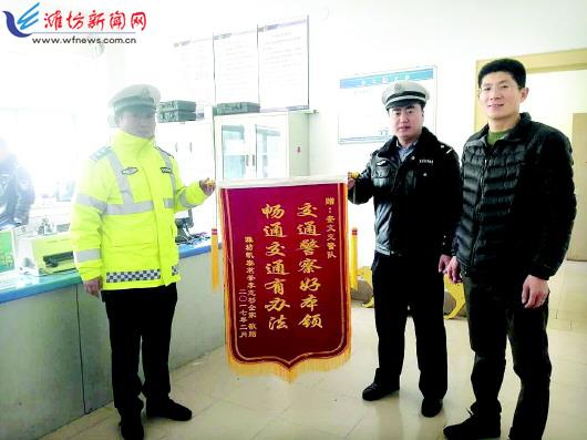 2月23日上午,李先生來(lái)到奎文交警大隊(duì)三中隊(duì),送上一面錦旗,表示感謝。