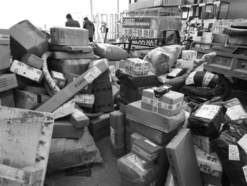 百世快遞歷下一部2000多個一天前的快件堆積成山