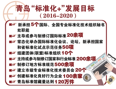《規劃》提出,到2020年,青島新承擔5個國際、全國專業標準化技術組織秘書處職能,主導或參與制修訂國際標準20余項,新承擔國家和省標準化試點示范任務50項,組建團體(聯盟)標準組織10個,主持或參與制修訂國家和行業標準200余項,制修訂地方標準規范500余項,建立市級專業標準化技術委員會20個,創建標準化良好行為企業100余家,青島標準館藏量達到120萬件,發展壯大一批專業水平高、市場競爭力強的標準化科研服務機構。