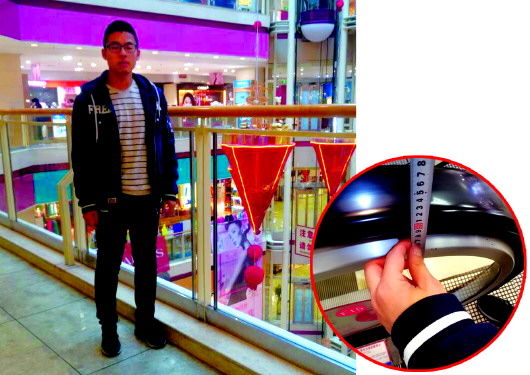 島城多數商場天井護欄高度能達到成人的胸部左右。 ▲扶梯的高度一般是90厘米。