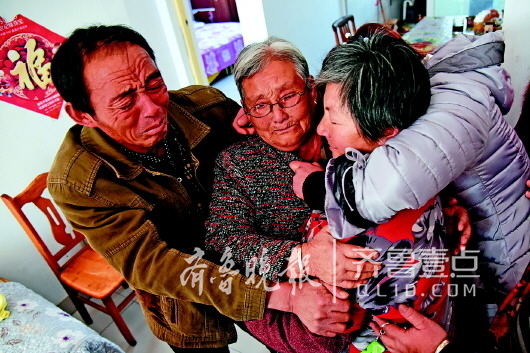 袁洪臣左手摸著老伴孫瑞娟的頭,右手緊緊拉住她的手,將已經(jīng)26年未謀面的“孩她媽”領(lǐng)回家。