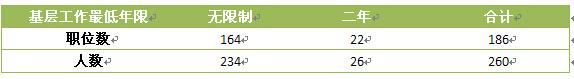 2017國考補(bǔ)錄山東職位中,對工作經(jīng)驗(yàn)的要求這一方面,164個職位234個名額沒有設(shè)置限制,其余22個職位26個名額要求最低2年的基層工作經(jīng)驗(yàn),比例大致為7:1和9:1。