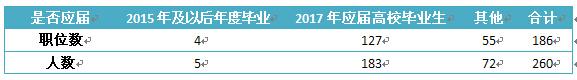 2017國考補(bǔ)錄山東職位中,對要求考生為2017年應(yīng)屆生的職位較多,共127個職位183個名額,分別占總數(shù)的68.28%和70.38%。