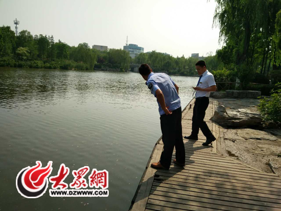 歷下環保人員正在大明湖邊進行排查。