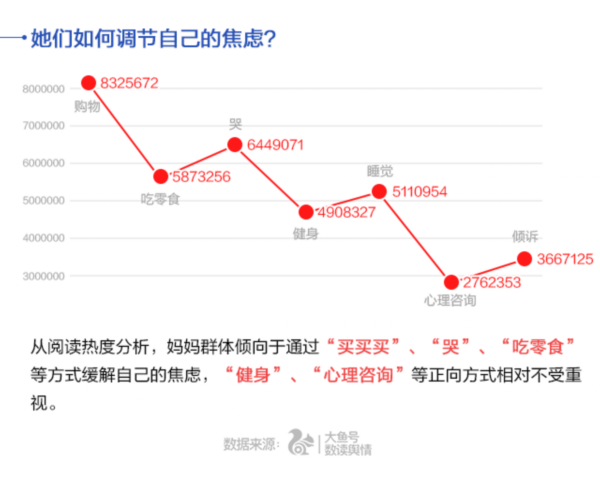 有意思的是,盡管這些媽媽們焦慮的因素各不相同,但她們的緩解方式卻心照不宣——購物。除此之外,哭與吃零食也是她們調(diào)節(jié)焦慮的主要方式。但是這些方式顯然只有短時(shí)效果,一些正向方式,如健身、心理咨詢等,在目前還未受到媽媽們足夠多的關(guān)注。