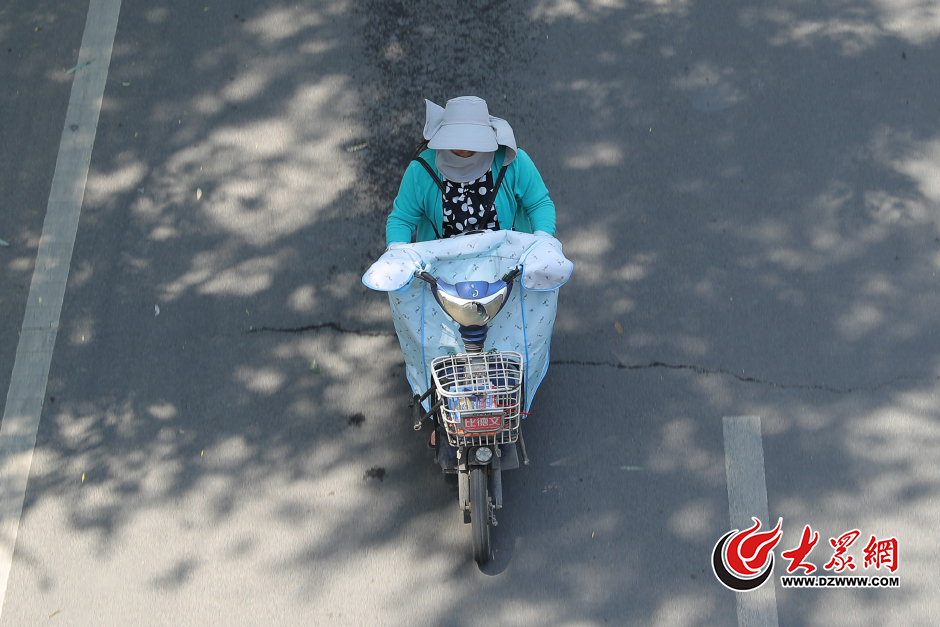 15月27日,濟(jì)南迎來新一輪的高溫天氣,在烈日的灸烤下,外出的市民紛紛想出各式奇招遮陽降溫。據(jù)濟(jì)南市氣象局發(fā)布的消息,26日,發(fā)布今年首個高溫黃色預(yù)警信號,27-29日濟(jì)南大部分地區(qū)最高氣溫可達(dá)35-36 ,市區(qū)、章丘、濟(jì)陽的部分地區(qū)最高氣溫可達(dá)37℃。圖為市民“全副武裝”在高溫下騎車出行。大眾網(wǎng)記者 王長坤 攝
