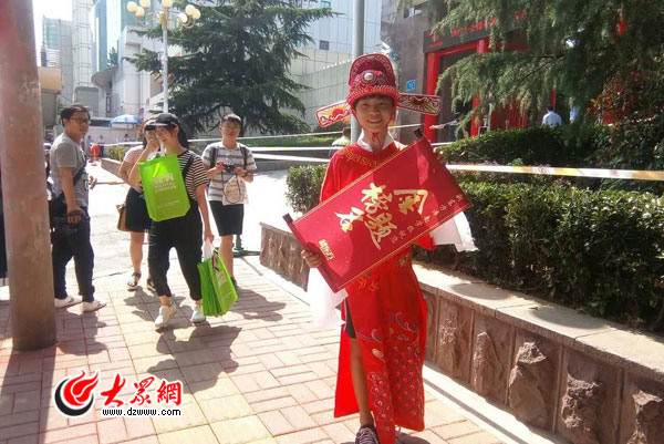 大眾網(wǎng)濟(jì)南6月8日訊 8日下午,山東2017年高考僅剩下英語(yǔ)一門考試。在省實(shí)驗(yàn)中學(xué)考點(diǎn)外,濟(jì)南一些教育培訓(xùn)機(jī)構(gòu)為吸引考生和家長(zhǎng)眼球,雇人扮做“狀元”“超人”,進(jìn)行營(yíng)銷推廣。(大眾網(wǎng)-山東24小時(shí)客戶端記者 孫杰)