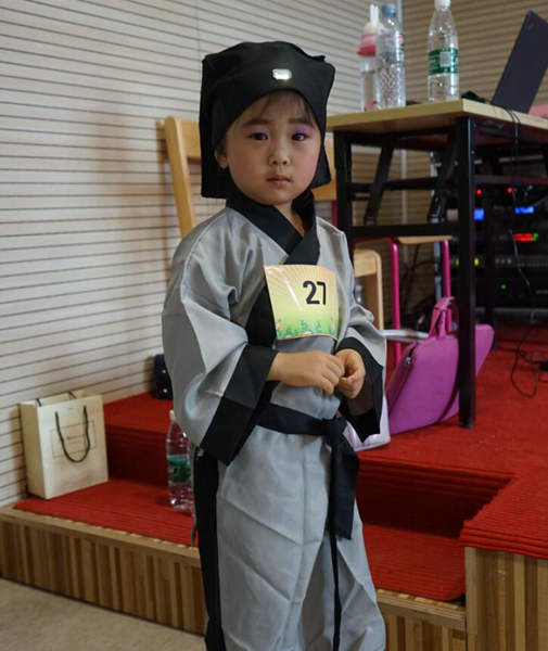 “5號小選手的弟子規(guī)不僅朗誦的好,而且外型也打扮的很像小書生,下次表演的時候在大膽一點,家長幫助孩子在對于文章涵義理解深入一點就更好了。”本次比賽特邀知名兒童心理專家,蘿卜筐兒童藝術社團總監(jiān)“老蘿卜”做為比賽評委。他對家長們說,孩子們在認真準備作品的同時,希望家長能幫助孩子配上相應的音樂,有利于孩子更好的發(fā)揮,放松心態(tài),抒發(fā)情感。他還囑咐到:“希望家長能夠真正幫助孩子從習慣上愛上朗讀,幼兒園的小朋友可以多講講故事,上小學的孩子可以多練習詩詞誦讀,從而讓孩子以一顆豐富的心,去感知和發(fā)現(xiàn)生活的美。”