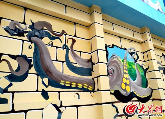 大眾網(wǎng)濟南6月20日訊 近日,濟南市大明湖西岸附近出現(xiàn)一面“3D動物園”涂鴉圍墻,栩栩如生的動物畫像吸引了眾多市民駐足留影。20日下午,記者來到濟南市大明湖西岸附近的銅元局前街6號,一面兩層樓高、50多米長的3D涂鴉圍墻十分引人注目,墻面上繪滿了章魚、鯊魚、松鼠、鸚鵡、大象等動物圖像,3D立體效果使畫面更加栩栩如生,吸引了不少市民駐足留影。