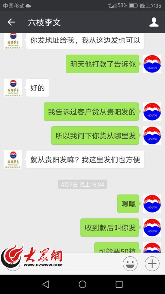 順著郭某提供的線索,專案組于2017年6月6日分兩組趕赴貴陽市,對其上線人員李某展開調查。由于報警人在收到貨發現酒有問題后,曾多次聯系并告知發貨人已報警,造成上線人員已知“東窗事發”,上線李某遂多次變更聯系方式和工作進行藏匿。專案組民警輾轉貴陽市、遵義市、安順市、六盤水市等地,連續偵察12天,最終于2017年6月17日在貴州省遵義市與重慶市搭界的縣城一工地內,將李某抓獲歸案。經審訊,犯罪嫌疑人李某以150元每瓶的價格購買假茅臺酒,并轉手以250元每瓶的價格賣給在天津工作的郭某,非法獲利3萬元。