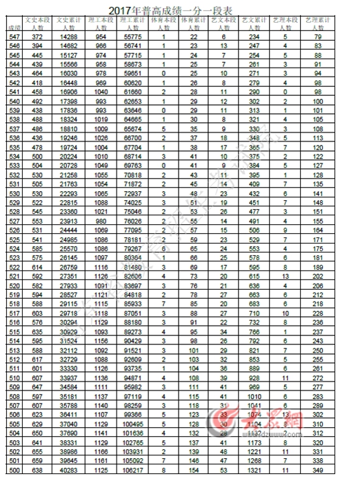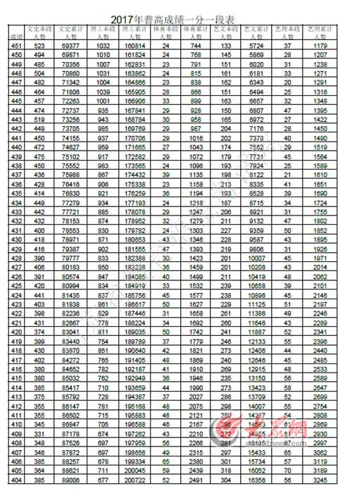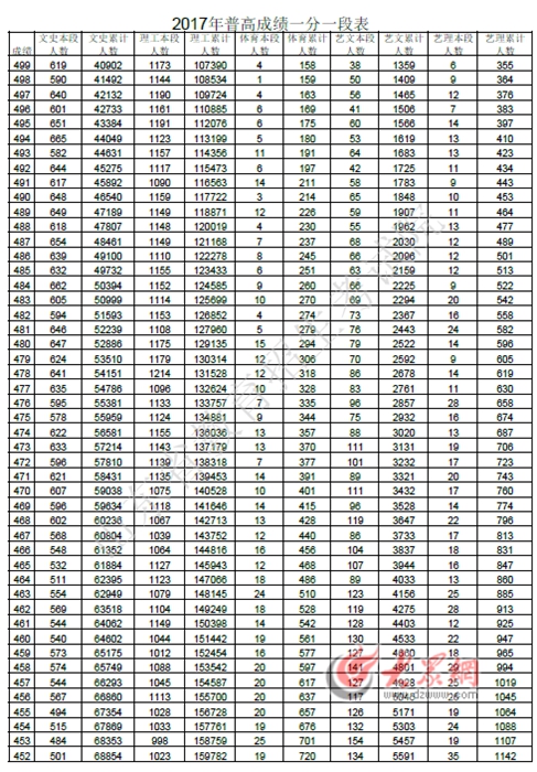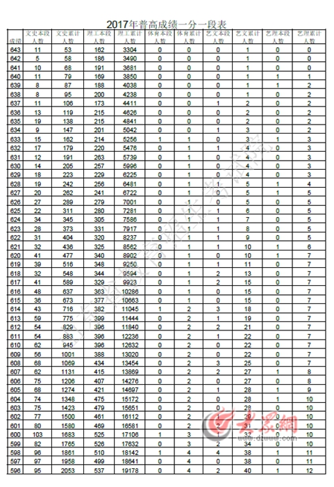 大眾網濟南6月24日訊 24日下午,山東2017年夏季高考一分一段表公布,其中理科691分以上者58人,文科651分以上者22人。