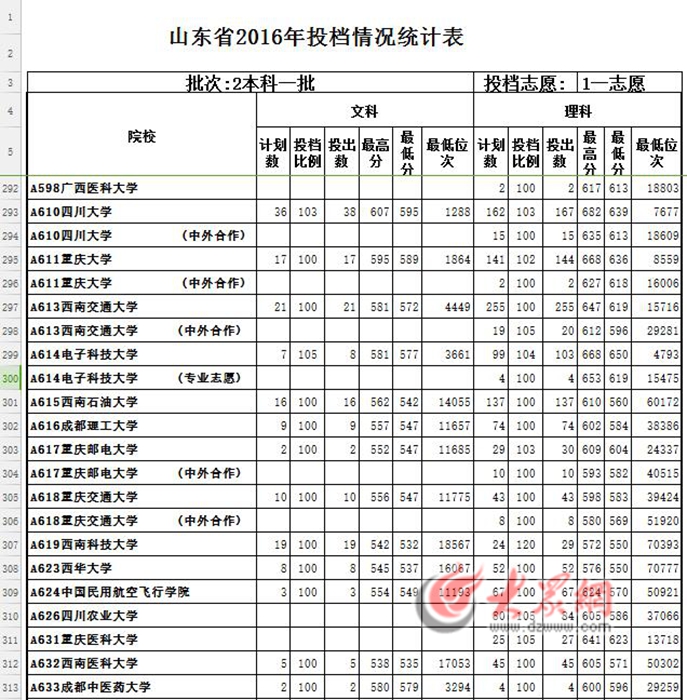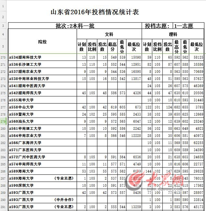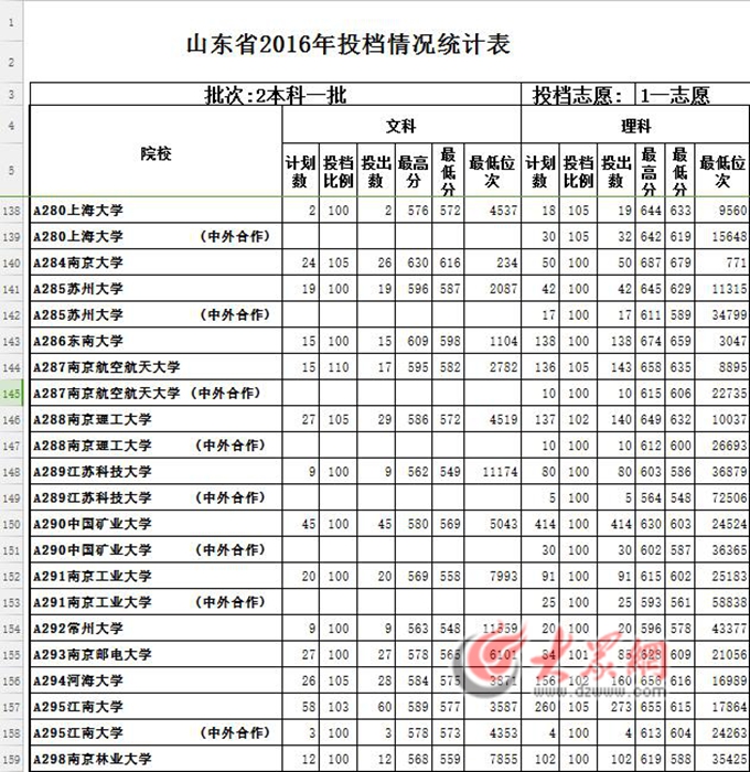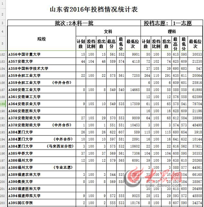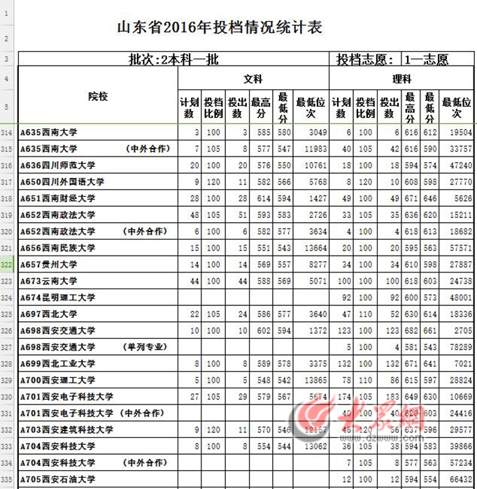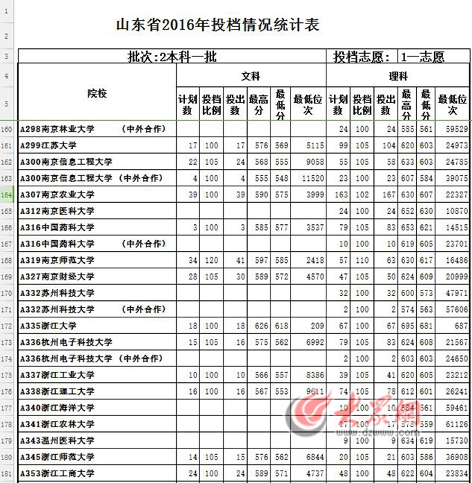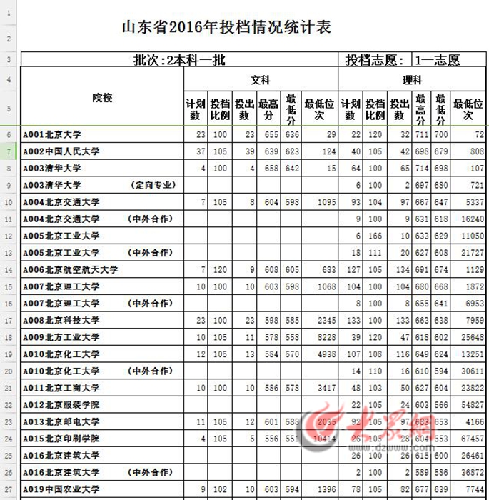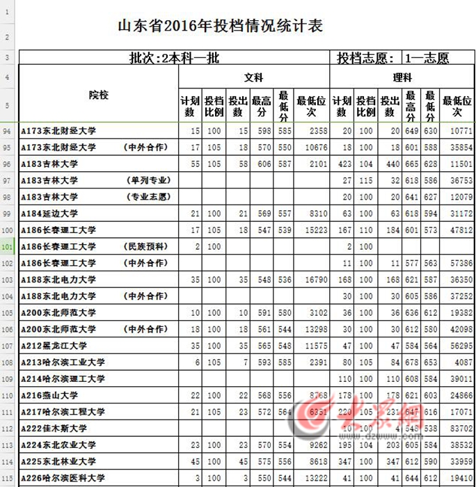 大眾網濟南6月24日訊 今天下午,山東省教育招生考試院官方網站公布2016年一本、二本投檔統計表。該表包含了2016年高考期間,所有本科高校當年在魯招生計劃,錄取最高分、最低分、還有位次,對于考生填報志愿極具參考價值。