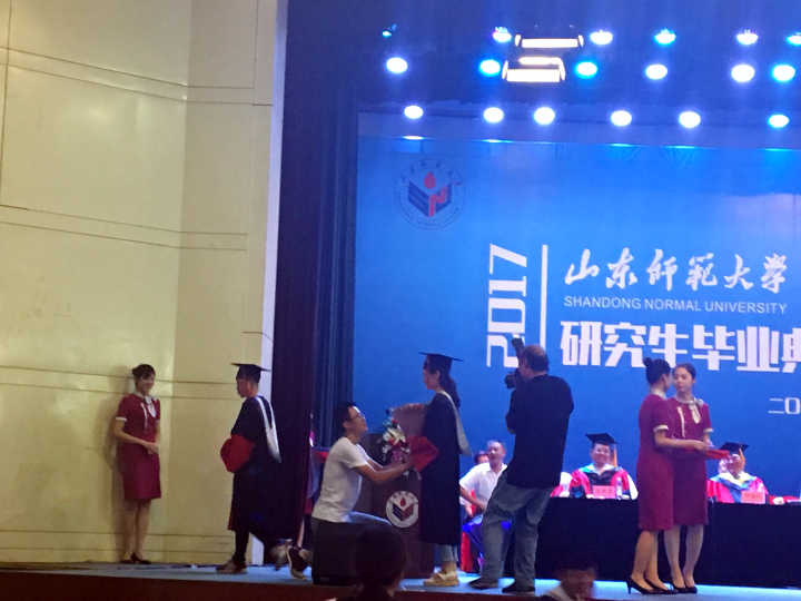 大眾網濟南6月27日訊 27日,山東師范大學2017研究生畢業典禮暨學位授予儀式在山東師范大學千佛山校區舉行,1890名博士、碩士參加了學位授予儀式。典禮現場,一位女博士剛被授予博士學位,一男子沖上臺,手捧鮮花單膝跪地,向女博士現場求婚。
