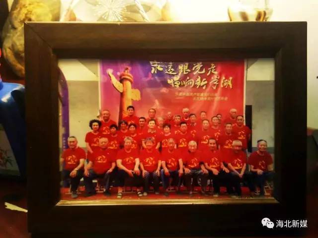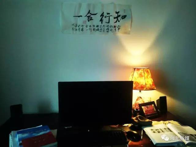 曲展在山東駐村當(dāng)“第一書記”時與全村黨員的合影照,也被他帶到了海北,擺放在書桌上。
