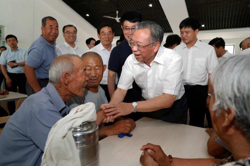 在濱州市社會養(yǎng)老服務(wù)中心,劉家義聽取醫(yī)養(yǎng)結(jié)合服務(wù)介紹,與老人們深入交流,他說,你們吃住有人照料,有病能及時救治,晚年生活很幸福,這是最讓我們高興的事。博興縣呂藝鎮(zhèn)老年公寓是濱州規(guī)模最大的養(yǎng)老機構(gòu),1000多名農(nóng)村老年人在這里享受養(yǎng)老服務(wù),70歲以上老人免費入住。劉家義來到這里,了解當?shù)剞r(nóng)村養(yǎng)老情況,饒有興致地觀看老人們自發(fā)組織的呂劇表演;在餐廳,察看午餐菜品,一一問候準備用餐的老人們;在醫(yī)務(wù)室,察看健康檔案,勉勵醫(yī)務(wù)工作者以兒女之心搞好服務(wù);在公寓,與88歲的韓殿士深入交談,祝他健康長壽。劉家義叮囑當?shù)刎撠熗,要堅持以人民為中心的發(fā)展思想,不斷健全多層次養(yǎng)老服務(wù)體系,積極發(fā)展醫(yī)養(yǎng)健康產(chǎn)業(yè),切實做到老有所養(yǎng)、老有所依、老有所樂、老有所安。