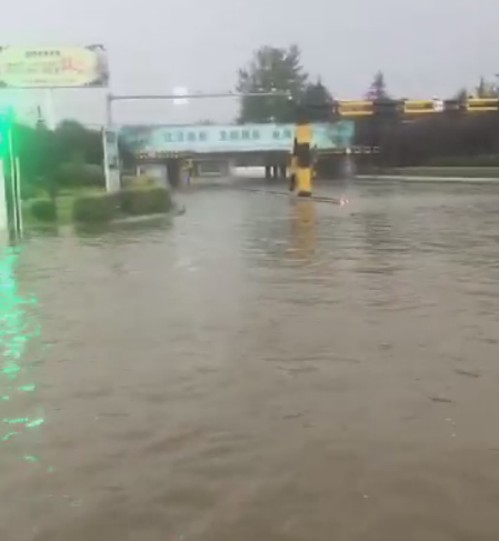 棗莊南園立交橋出現積水。