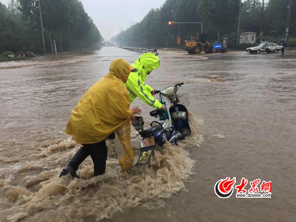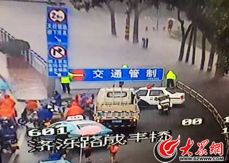 因路面積水嚴重,交警對濟濼路成豐橋進行了交通管制