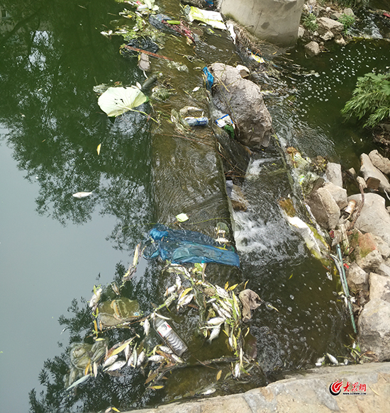 據知情者介紹,這兩個排污管排出的污水主要是附近居民小區排出的生活污水,由于濟南近期降雨量多,上游排水管道附近設置的抽水泵抽取污水不及時,大量污水流進甲子湖,造成河水污染嚴重,湖中大量魚死亡。(大眾網-山東24小時見習記者 柳苗苗)