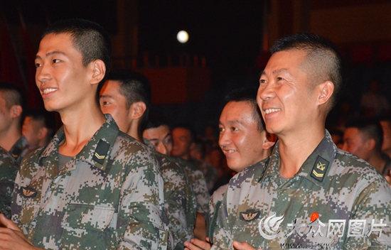 大眾網濟南8月1日訊 慶祝建軍90周年前夕,“山東新階層軍營體驗日暨慶‘八一’慰問演出”活動走進駐濟某部。“吞雞蛋”“耳朵提水桶”《映山紅》《江姐》……一個個精彩絕倫的節目將氣氛推向高潮,現場數百名指戰員大呼過癮,掌聲雷動。