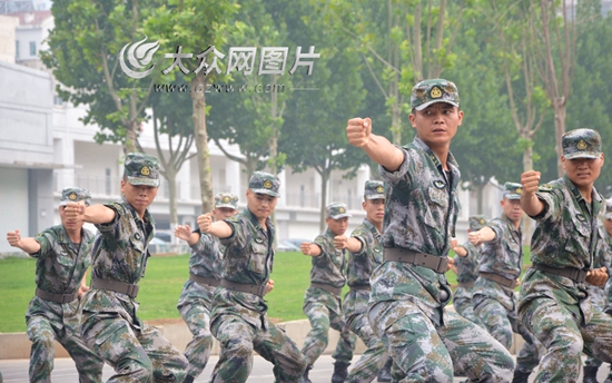 “山東新階層軍營體驗日暨慶‘八一’慰問演出”活動走進駐濟某部。山東新階層人士深入連隊,近距離觀摩體驗隊列訓練、軍體拳等訓練科目。(記者 王宗陽 攝)