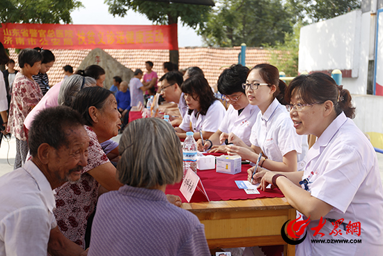大眾網濟南8月9日訊 8月9日,記者跟隨濟南市公安局的工作人員以及山東警官總醫院的醫生們來到了高家莊村,為這里的村民帶來免費診療和慰問。