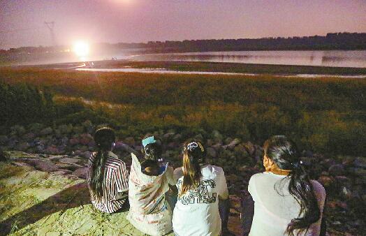 事發(fā)地上空的月亮發(fā)出昏紅色的光,與閃爍著的星星一起點(diǎn)綴著夜晚的天空,但岸邊等待的人們無(wú)心欣賞。堤壩一處空地上,4名女子靜靜地圍成圈,其中一名女子背上背著一個(gè)襁褓,手機(jī)里不斷傳出鄉(xiāng)音,能感覺(jué)到手機(jī)那邊說(shuō)話人的焦慮與擔(dān)憂。
