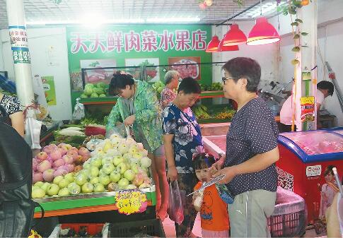 在井女士的生鮮便民店里,居民在選購蔬菜水果。記者孫鋒 攝