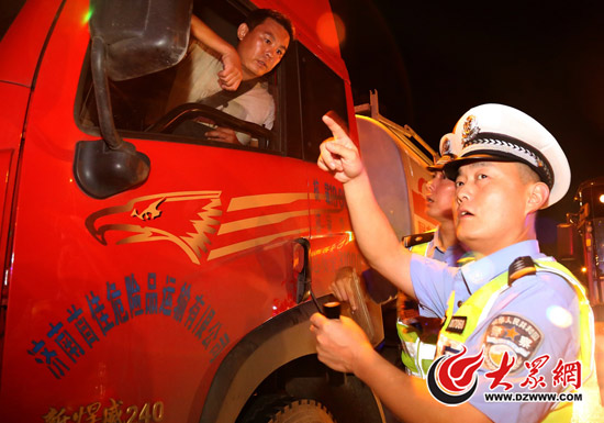 濟南交警市中區大隊開展柴油貨車夜查行動。