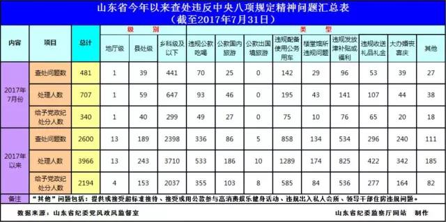 大眾網(wǎng)8月24日訊記者從山東省紀(jì)委監(jiān)察廳網(wǎng)站獲悉,2017年7月,全省各級(jí)紀(jì)檢監(jiān)察機(jī)關(guān)查處違反中央八項(xiàng)規(guī)定精神問(wèn)題481起,處理707人,給予黨政紀(jì)處分340人。