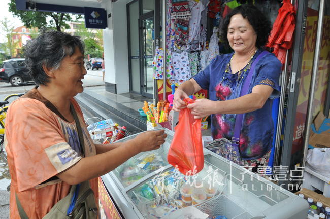 邢威敏的小店在威海統一路,明明是個外貿童裝店。可她最寶貝的卻是店里兩個大冰柜。每天最開心的是守在冰柜前,把各式各樣的冰棍遞到小朋友手中。孩子們都親切地喊她“冰棍奶奶”。