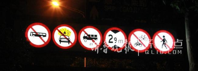 背景發光警示標志是把原先不規則散布在限高欄上的警示標志進行統一規格、樣式,將6個高架路限行警示標志一字排開,整合在一塊發光板上,增加夜間自動點亮功能,使得標志更醒目,起到全天候無障礙警示作用。