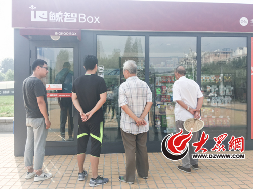 大眾網(wǎng)濟(jì)南9月11日訊 灰黑色門棱、酒紅色標(biāo)牌、透明的玻璃窗,一個(gè)15平方米的“玻璃盒子”坐落在濟(jì)南泉城廣場西北側(cè)空地上,“玻璃盒子”里面擺放著形形色色的商品,卻不見收銀員的身影,不少過路的市民隔著玻璃打量著里面的商品。這個(gè)“玻璃盒子”就是濟(jì)南市首個(gè)無人超市。