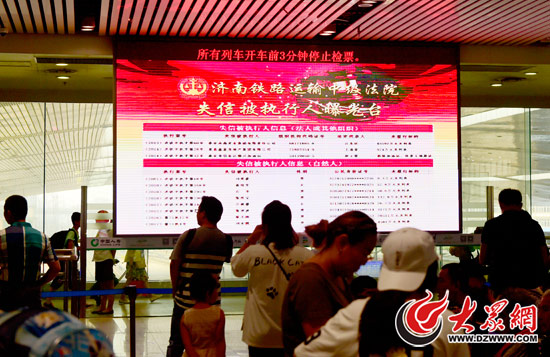 濟南火車站候車廳循環(huán)播放被曝光的老賴名單。