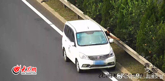 大眾網濟南9月15日訊 近日,青島交警同三高速民警在視頻巡檢時,發現一輛魯H牌照的白色轎車行駛到沈海高速公路王臺路段(日照方向)時,突然停在了內側車道上。緊接著,一名男子從車內伸出胳膊摘綠化護欄里的石榴,眼看胳膊夠不到他索性下車走到護欄邊摘。摘滿一捧石榴后,該男子才的駕車離去,但他不知道的是整個過程都被民警抓拍下來。民警對該男子在高速公路上違法停車的行為,依法對其處罰款200元、記 6分的處罰。(大眾網—山東24小時記者 賀輝 通訊員 劉海)
