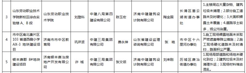 對揚塵治理較差,整改不及時或屢改屢犯的濟南唐人中心一期A-3、A-4、A6地塊房地產開發項目等7個項目的參建單位和屬地管理部門,予以全市通報批評,責令限期整改,計入不良行為記錄,納入誠信評價體系,并將其違規行為移交相關執法部門進行處罰。