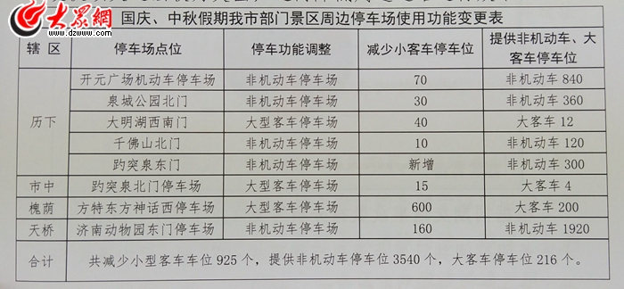 大眾網(wǎng)濟南9月29日訊 記者從濟南交警支隊獲悉,今年國慶中秋假期濟南市區(qū)開元廣場、泉城公園北門、大明城西南門、千佛山北門、趵突泉東門、趵突泉北門、方特東方神話西停車場、濟南動物園東門停車場等8處公用停車場,將延續(xù)“僅供公共交通車輛、應(yīng)急車輛停放”的政策,共減少小型客車車位925個,提供非機動車停車位3540個,大客車停車位216個。2016年國慶長假期間,濟南市共處罰違法停車7467起,主要集中在市區(qū)內(nèi)的景區(qū)、商圈周邊。部分市民以及外地游客執(zhí)意開車前往上述景區(qū)周邊,導(dǎo)致車輛亂停亂放、周邊道路通行效率降低。(大眾網(wǎng)—山東24小時記者 賀輝)