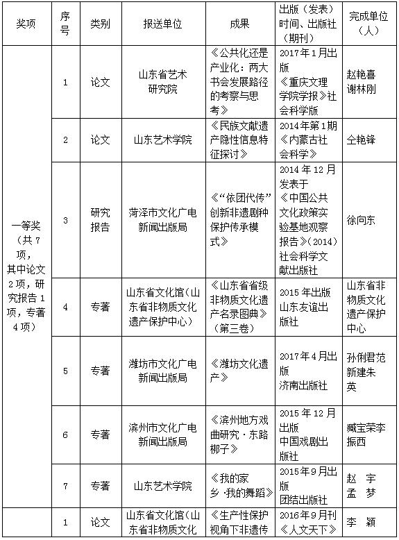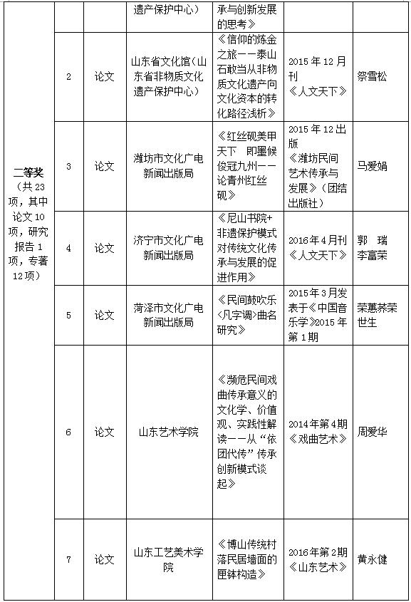 山東省非物質(zhì)文化遺產(chǎn)保護(hù)優(yōu)秀科研成果評(píng)選結(jié)果