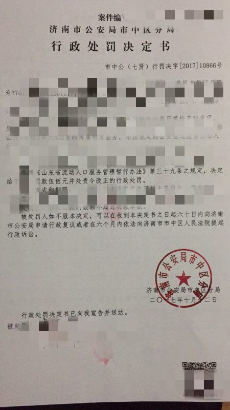 濟南市公安局市中區分局開出全市首張房屋中介行政處罰單。