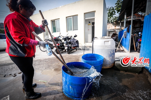 17日,在天橋區濼口附近的一處公交汽車臨時停放點廁所旁邊,一個直徑80公分、“半人”高的水桶正不停的“喝水”。順著水管,記者發現灌水的水管接到廁所的水龍頭上,銹跡斑斑的鐵絲,可以看出水管已經很長時間沒有摘下。“我已經在這工作一年半了,每天都用水清洗公交車。”一位正在涮墩布的清潔工講道。在不到15分鐘的時間里,記者發現有6輛公交車停放于此接受“清洗”。