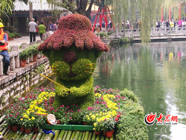 今年還有一大亮點就是小景造型十分可愛,可謂萌力十足。三股水對面的水面上,一只憨態可掬的貓咪造型可愛亮相,水面往東轉角處,“光頭強”、“熊大熊二”也趕來湊熱鬧,吸引孩子的目光。(大眾網—山東24小時客戶端記者 于文婷)