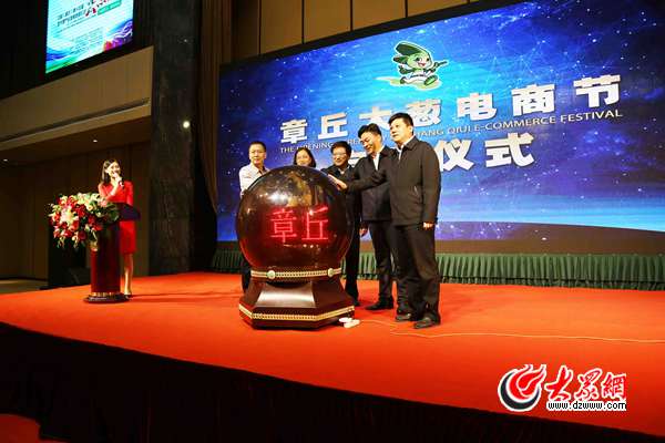 濟南市委常委雷天太,省商務廳電子商務處調研員錢淑芬,濟南市商務局副巡視員康廣民,章丘區委書記劉天東,區長韓偉共同啟動本次章丘(大蔥)電商節。