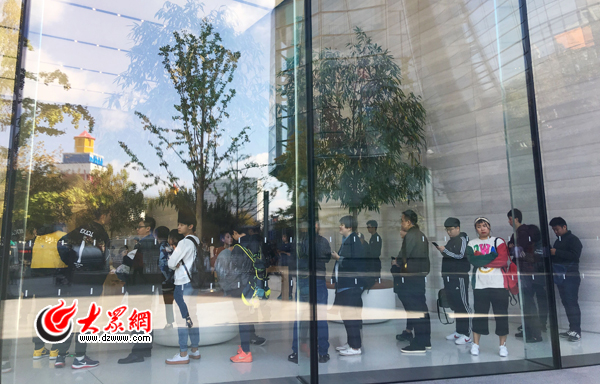 濟南恒隆廣場蘋果零售店,有20多位顧客排隊,等候提取iPhoneX。