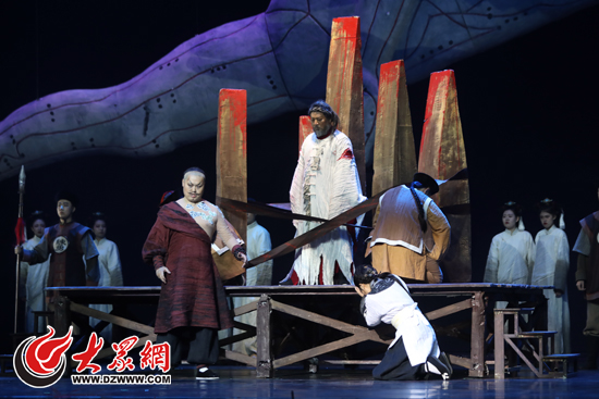 “《檀香刑》是一部具有愛國情懷和愛國主義教育意義的歌劇。我們院黨委決定,由我這個(gè)十九大代表把《檀香刑》送到紅色革命老區(qū)臨沂。”楊秀玉說,該劇曾在濟(jì)南等地演出,經(jīng)過多場次的歷練和打磨,主創(chuàng)團(tuán)隊(duì)增加了更多的新元素,大膽運(yùn)用山東琴書這種傳統(tǒng)說唱形式與歌劇構(gòu)成雙重?cái)⑹陆Y(jié)構(gòu),并在旋律、和聲等方面吸收了地方戲曲茂腔的藝術(shù)特色,突出了民族元素。