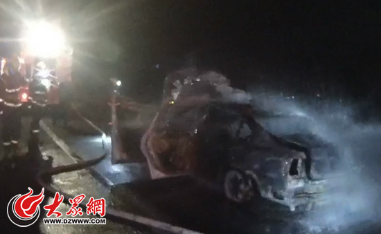 消防官兵將大火撲滅后,轎車被燒得只剩車架