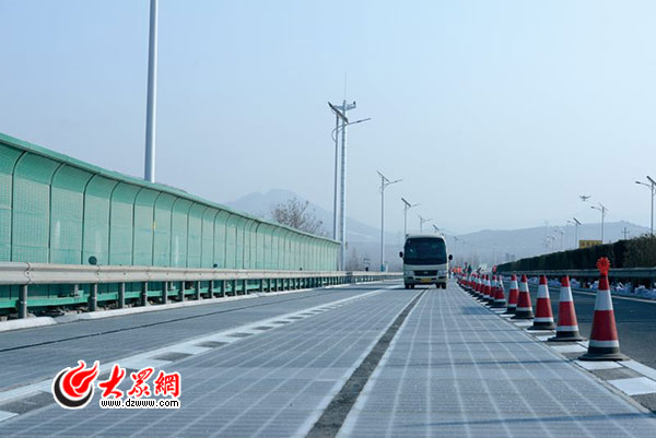 大眾網濟南12月28日訊 28日,齊魯交通發展集團投資建設的世界首條高速公路光伏路面試驗段在濟南繞城高速南線正式通車。這是繼今年9月29日開通全國首例光伏路面示范區之后,齊魯交通在光伏路面領域的又一次重大突破,將承載式光伏路面技術應用到通行要求最為嚴格的高速公路上,再次刷新了公眾對未來交通的期望。