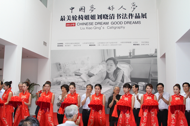 2013年9月,“最美輪椅姐姐”劉曉清書法展覽在北京開幕
