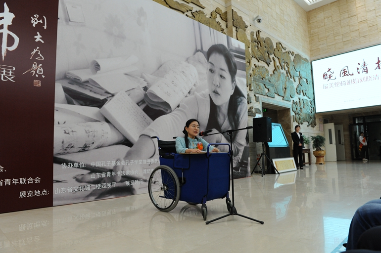 2014年12月,伏淇蘭心——最美輪椅姐姐書法作品展在諸城開幕
